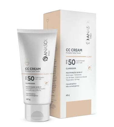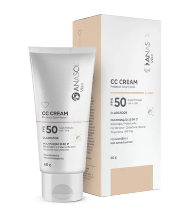 Cream Facial FPS 50 Claro, medio e escuro 60g - Anasol