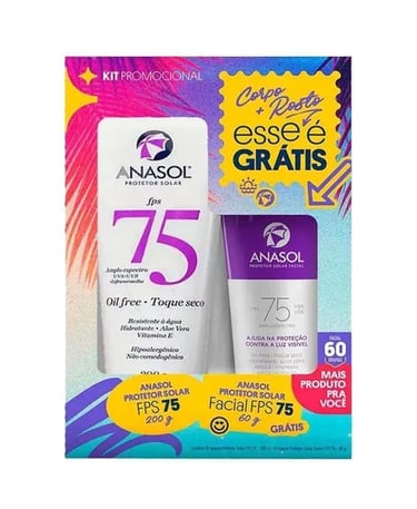 Kit protetor solar anasol 75 FPS facial 60g +corporal 200g