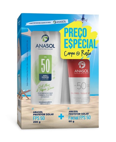Kit protetor solar anasol 50 FPS facial 60g +corporal 200g